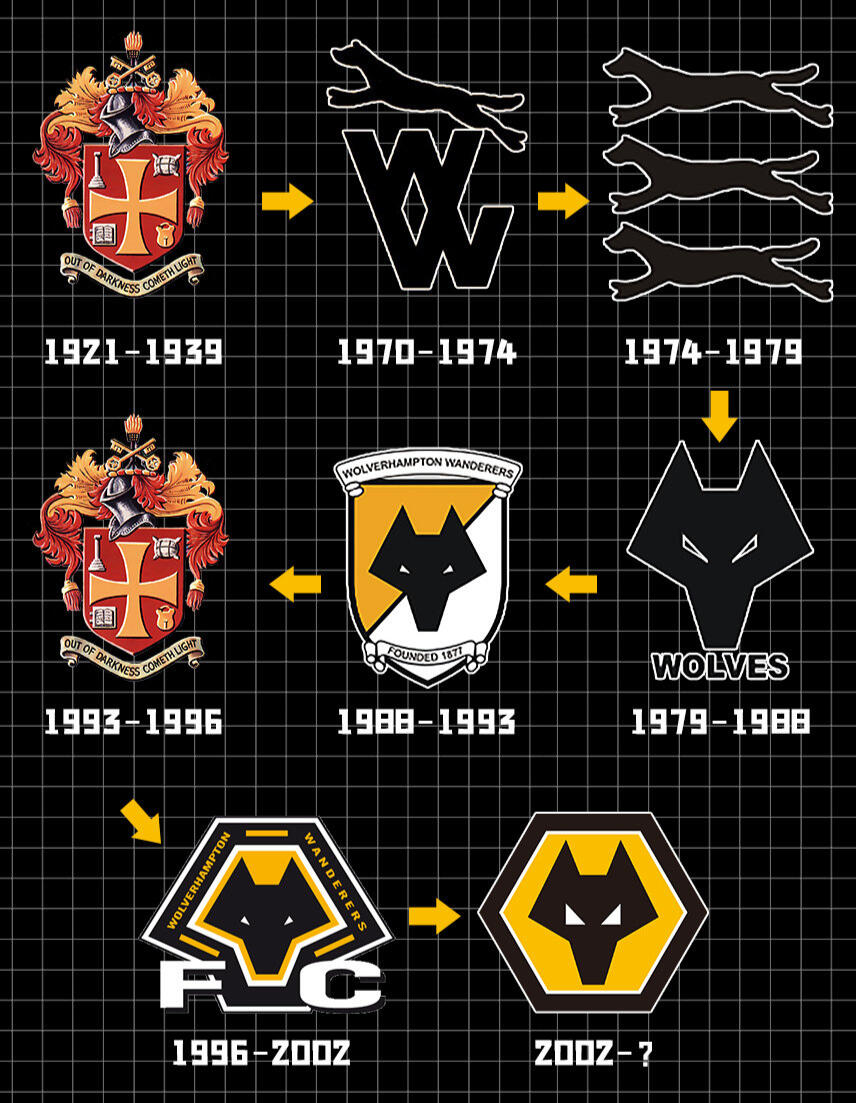 The main colours of Wolves can be seen from the gold and black logo. The source comes from the motto of the city where the Wolves are located: "Out of darkness cometh light", representing the gold and black colour that blends before dawn.
